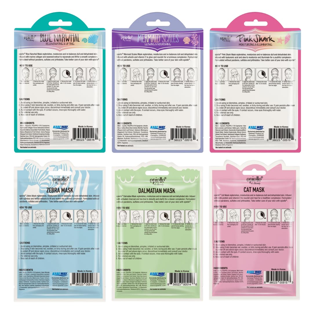 • Fun & Unique Design: This assorted set of epielle Animal Face Masks features cute designs like zebra, dalmatian, cat, shark, narwhal, and mermaid scales, making self-care more fun for all ages.