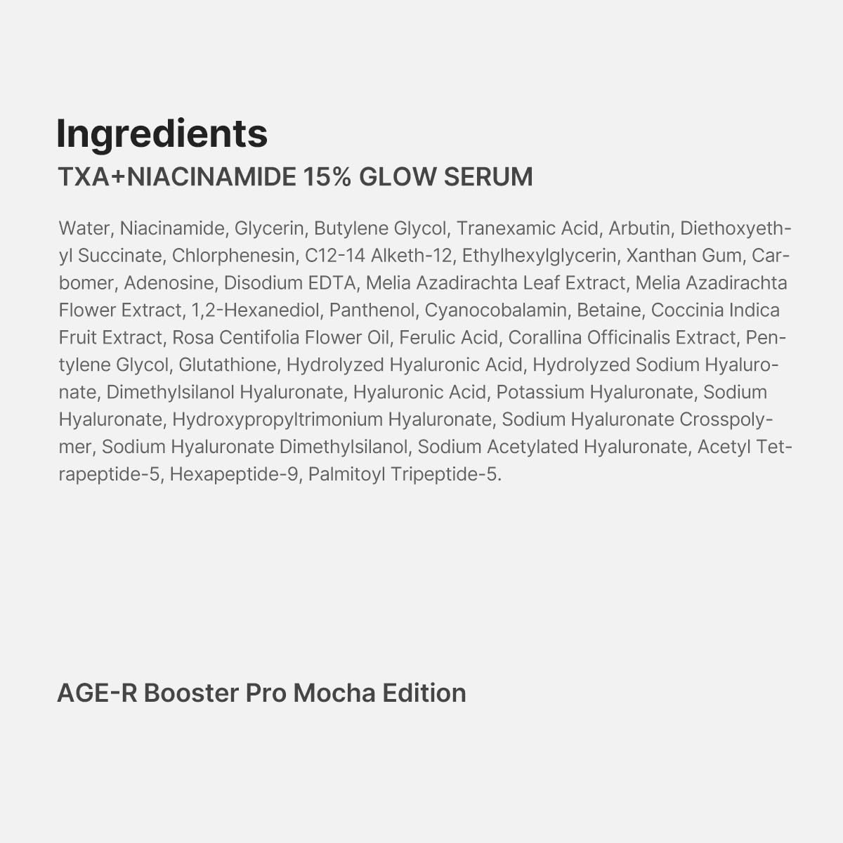 • [Holiday Limited Edition – Only This Season] Celebrate with our exclusive Mocha Booster Pro — available only during the holidays. Paired with our Glow All Day TXA Serum, this kit delivers the luminous finish.